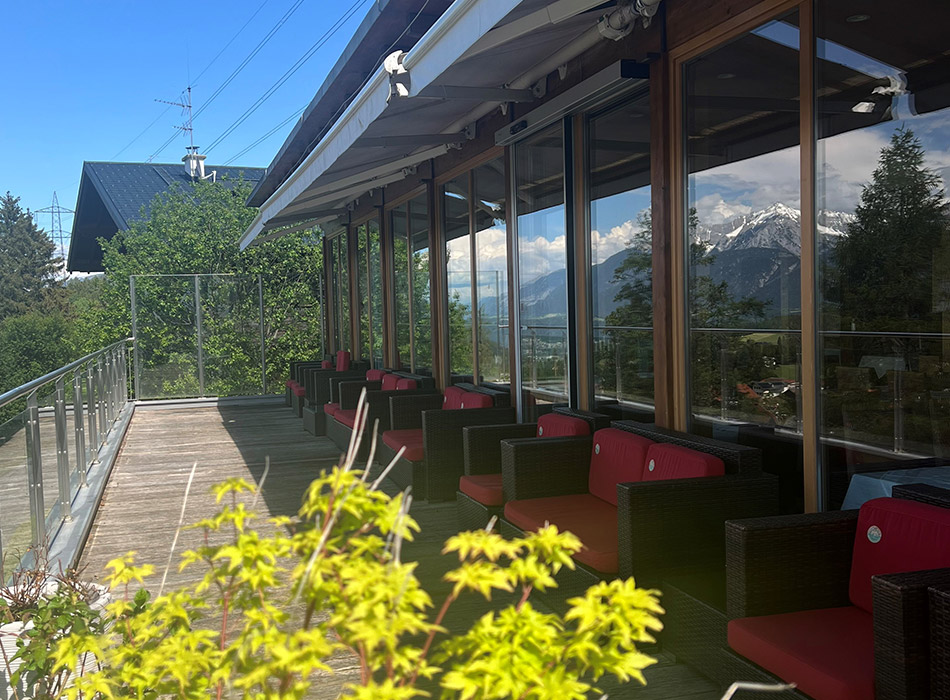 Relax in the restaurant of the clubhouse in Rinn, where an enchanting viewing terrace awaits you. Here your culinary wishes will come true while you end your wonderful day of golf. The romantic location of our clubhouse in Lans promises an unforgettable view of the Nordkette, both from the rooms and from the lounge.